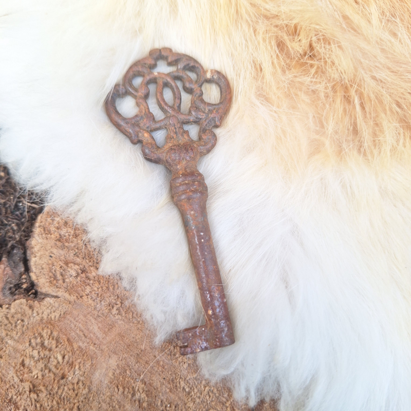 Vintage kastsleutel 'rusty' bewerkt/ gekruld
