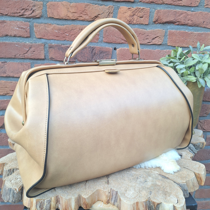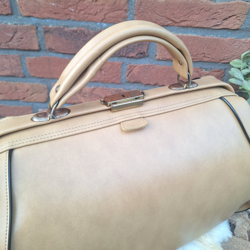 Vintage kunstlederen 'dokters'(weekend) tas, naturel