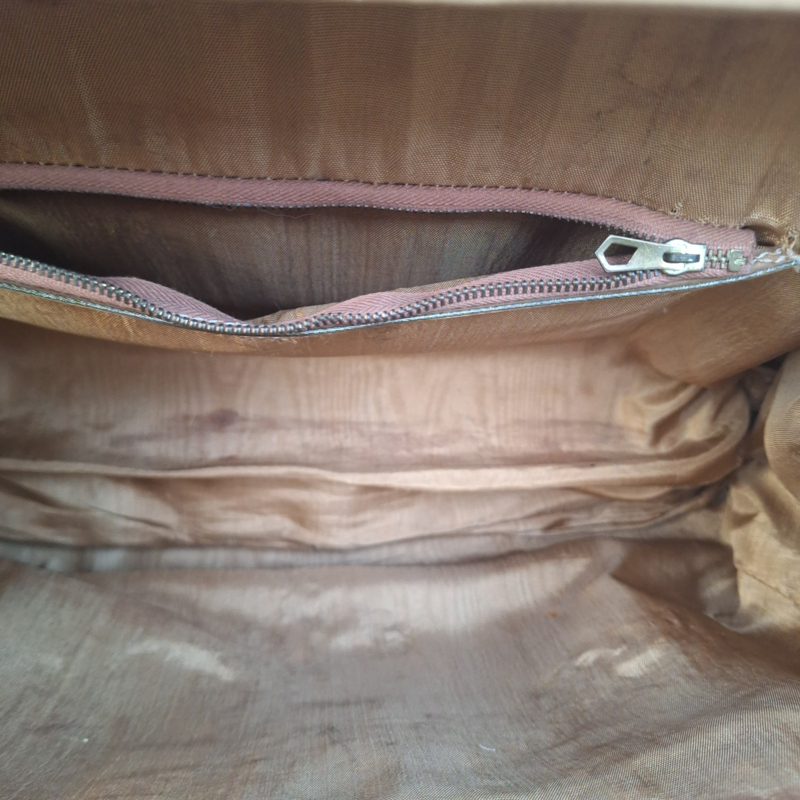 Deze tas heeft vast al héél wat meegemaakt, zijn inhoud en zijn eigenaresse misschien vele levens gered zelfs. De verkoopster gaf aan dat dit de werktas was van haar oudtante, welke het beroep van dokter uitoefende. Zie ook de donderbruine lederen dokterstas in onze webshop.