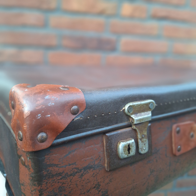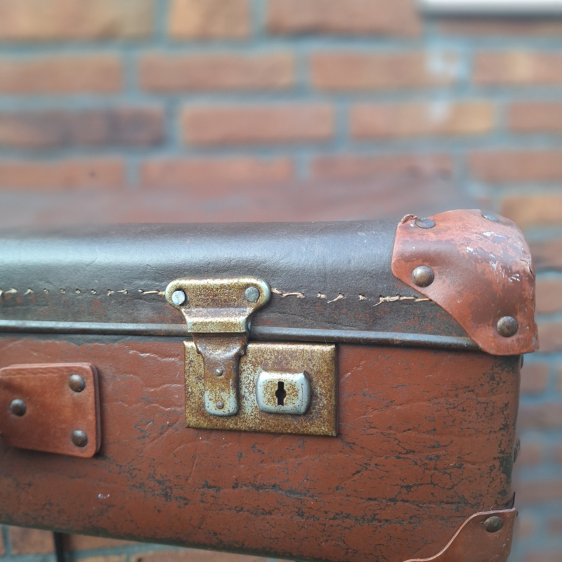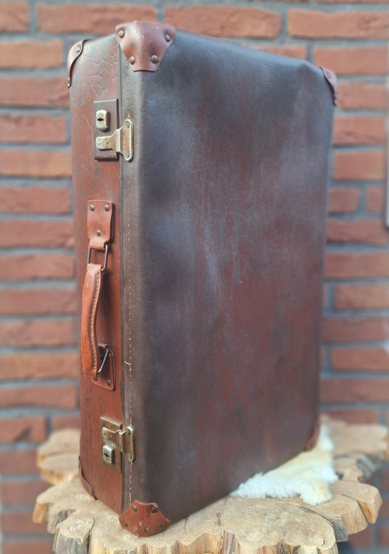 Vintage bruine koffer van geperst karton i.cm. leder, Jaren '50