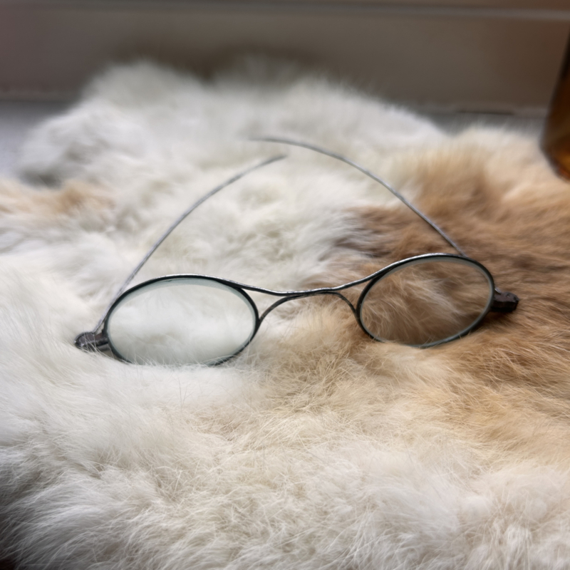 Antiek Frans klein metalen brilletjes, waarbij meteen je gedachten toch dwalen naar wie deze toch gedragen zouden hebben? Helaas is er 1 pootje ca. 3 cm korter dan de andere. Bij de bril zit een schildpad brillenkoker maar ook deze heeft enige schade, toch vond ik het leuk om deze er bij te doen. (Zie de foto's voor details)