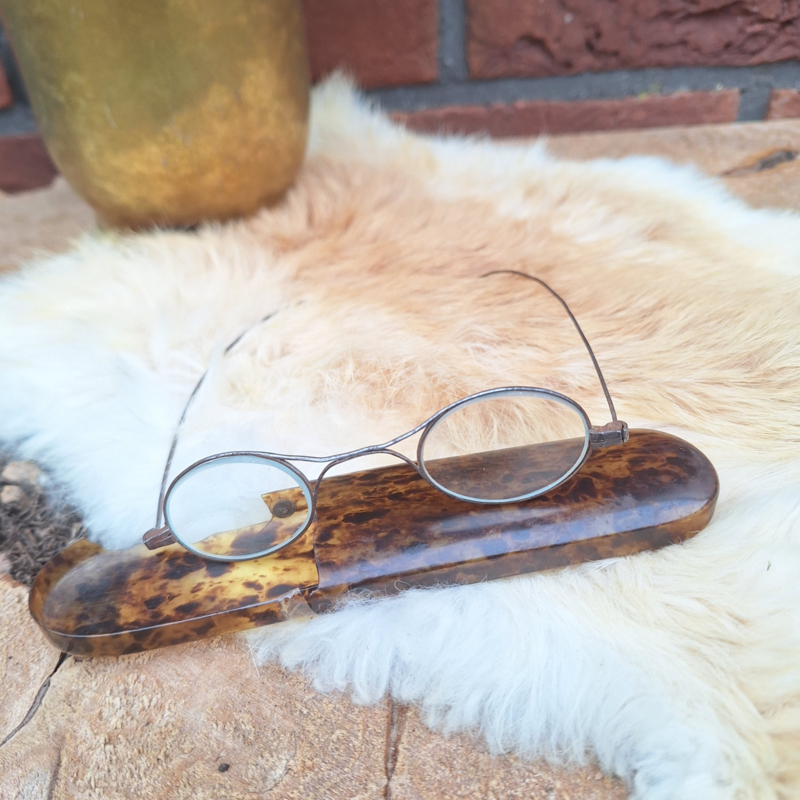 Antiek brilletje in schildpad brillenkoker, ca. 1940