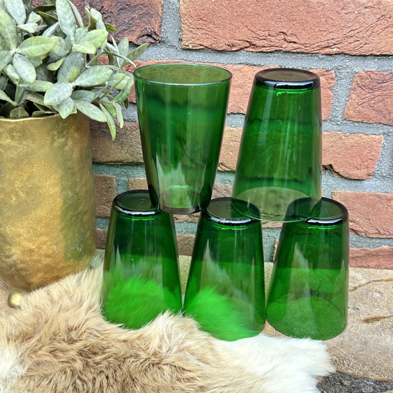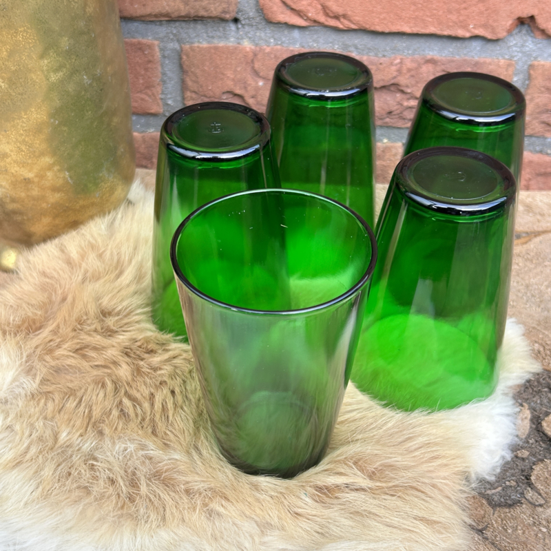 Deze mooie set van 5 groene waterglazen.