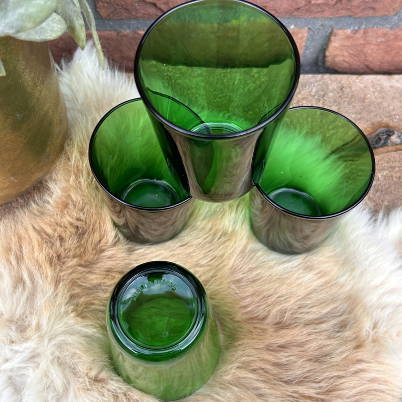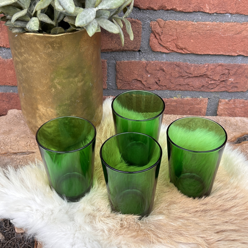 Vintage kleine groene water glazen 'Anchor Hocking' (4) , 60/70's
