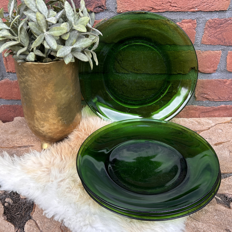 Deze mooie set van 4 groene borden van Franse makelijk én dus nog van écht gekleurd glas zijn toch geweldig!