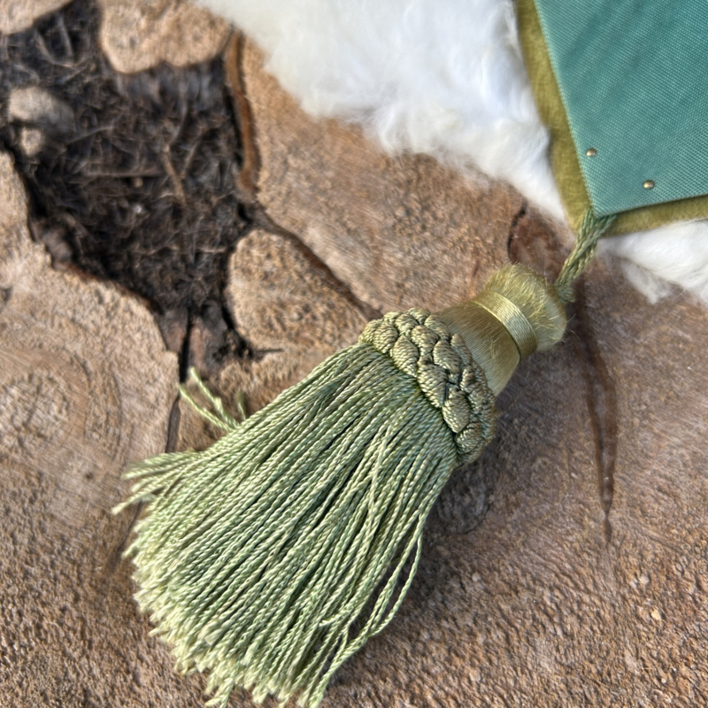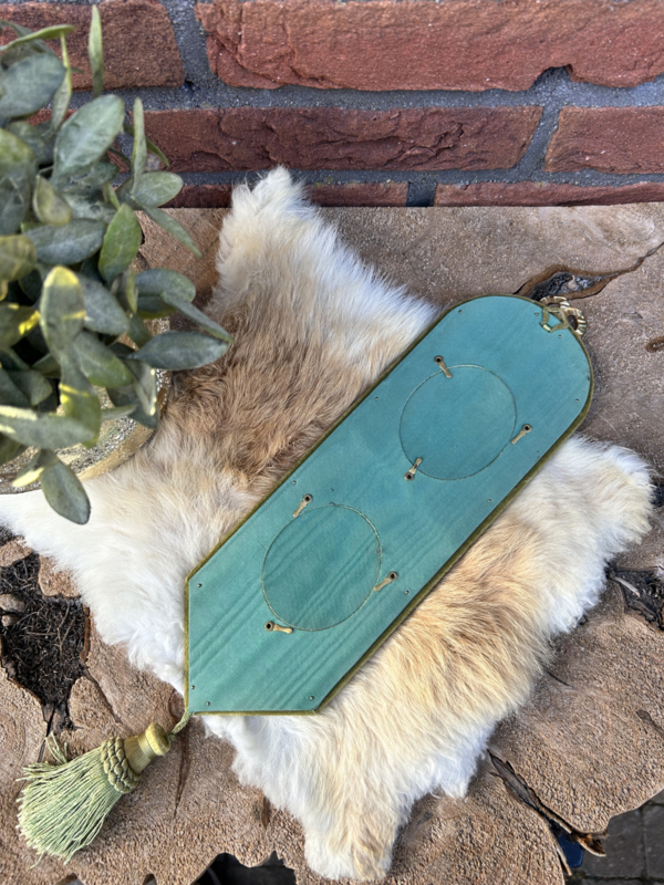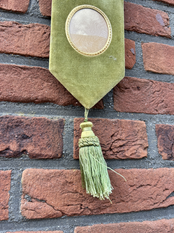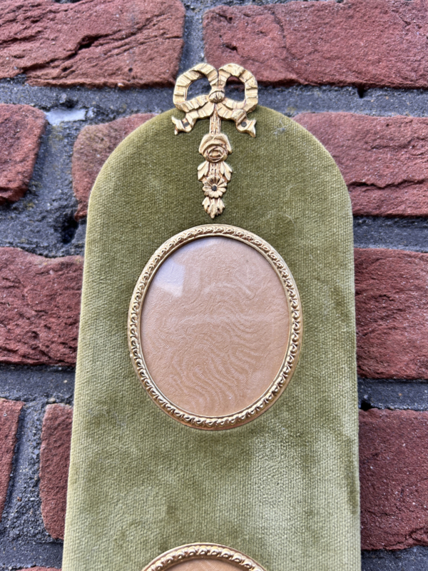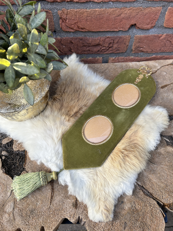 Antieke groene fluwelen wandhanger voor 2 foto's met kwast