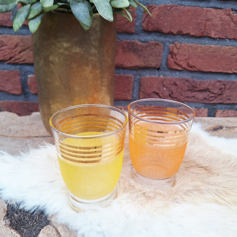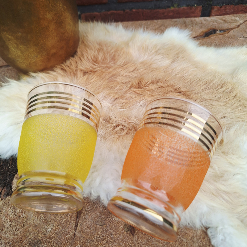 Vintage sap/ water glazen 'frosted' & gold ( 2 stuks)