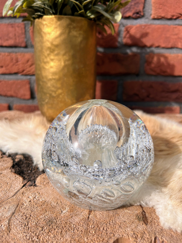 Vintage glazen presse papier/ olie lamp pf voor geurstokjes 'Bubbles'Prachtige glazen bol met binnenin een holle ruimte voor eventueel lampolie of geurstokjes olie... Natuurlijk simpelweg ook een geweldige presse-papier. De mooie bellen binnenin lijken oneindig... bijna betoverend als je er lang…